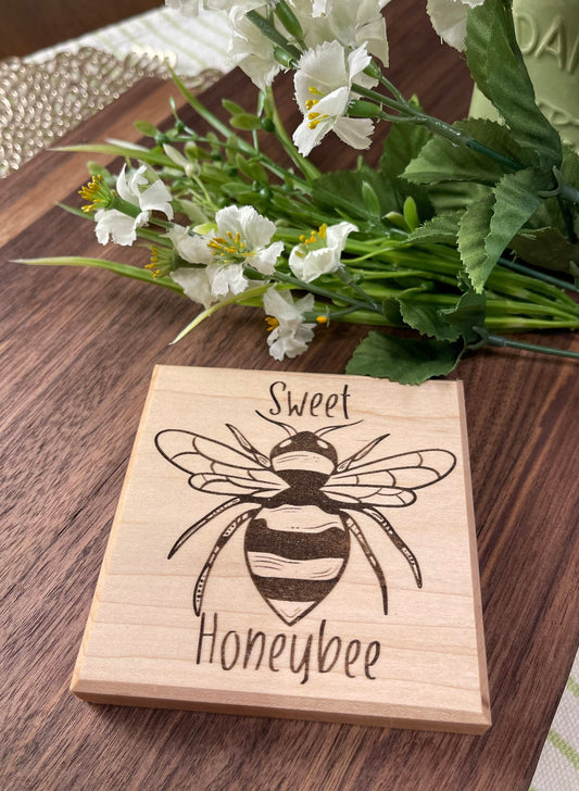 wood coasters | farmhouse coasters | rustic maple coasters | wooden coasters | sunflower coasters | honey bee coasters | engraved coasters