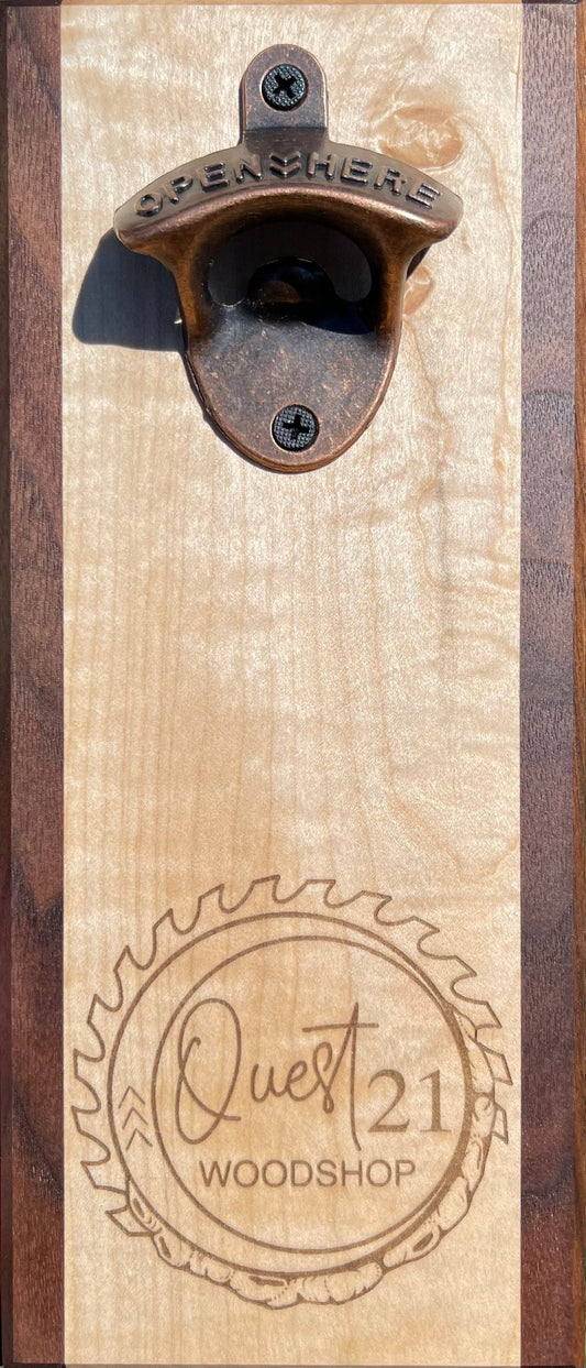 Personalized Bottle opener / gifts / curly maple and walnut bottle opener / magnetic cap catch / laser engraved